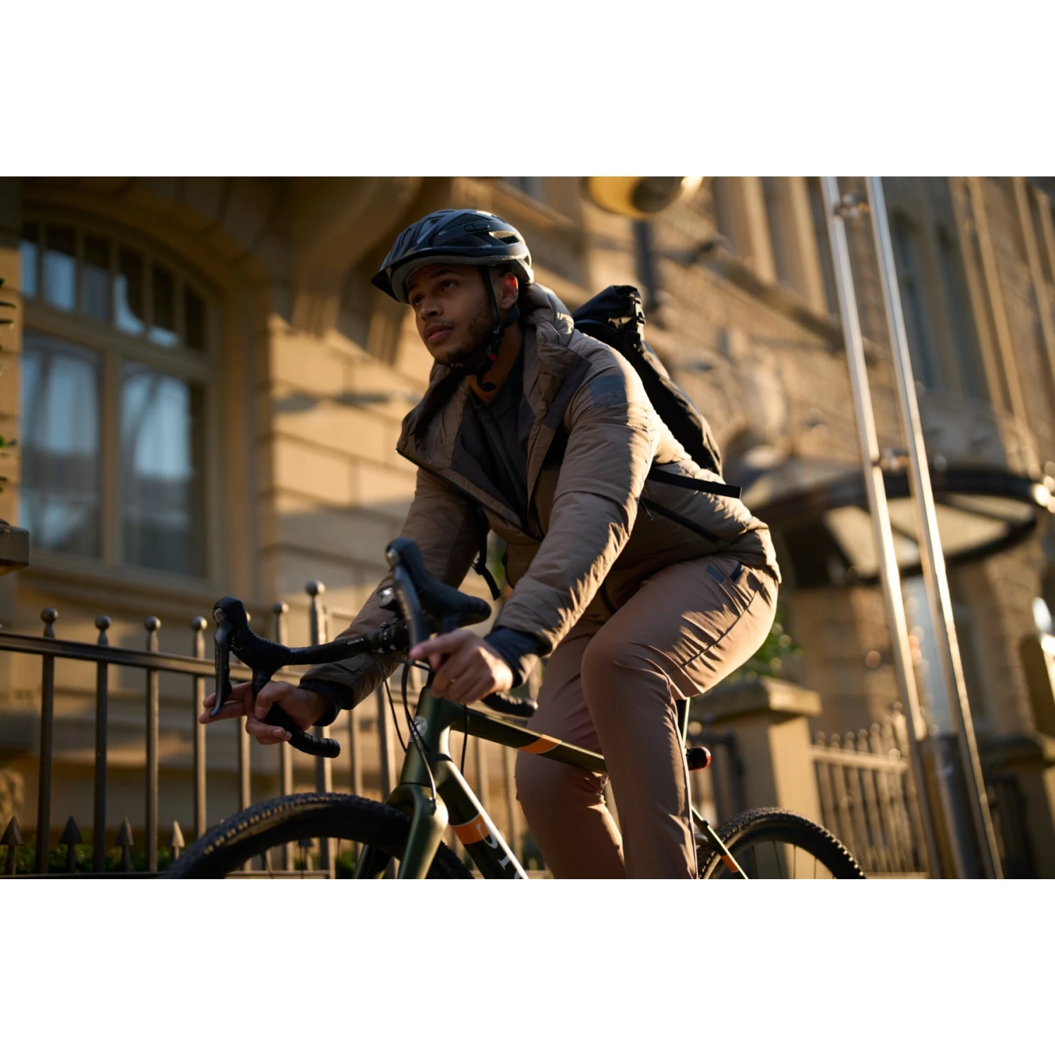 Het hoofdmateriaal en de voering zijn volledig gemaakt van gerecycleerde materialen. Voor meer zichtbaarheid – vooral op de fiets – is de rolkap ook voorzien van heldere reflecterende details.