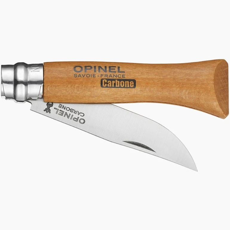 Het door Opinel gebruikte XC90 koolstofstaal is een ongelegeerd staal met een hoog koolstofgehalte dat na een thermische behandeling een uitstekende duurzaamheid bereikt. Dit zorgt voor een perfecte stabiliteit van de scherpte, evenals een hoge slijtvastheid en gemakkelijk herslijpen. Niettemin heeft koolstofstaal een lage weerstand tegen corrosie door vocht. Daarom moeten bepaalde voorzorgsmaatregelen worden genomen: bewaar uw mes nooit op vochtige plaatsen, vooral niet in de vaatwasser. Reinig het lemmet na gebruik met een ingevette doek en smeer het lemmet en de gewrichten regelmatig in.