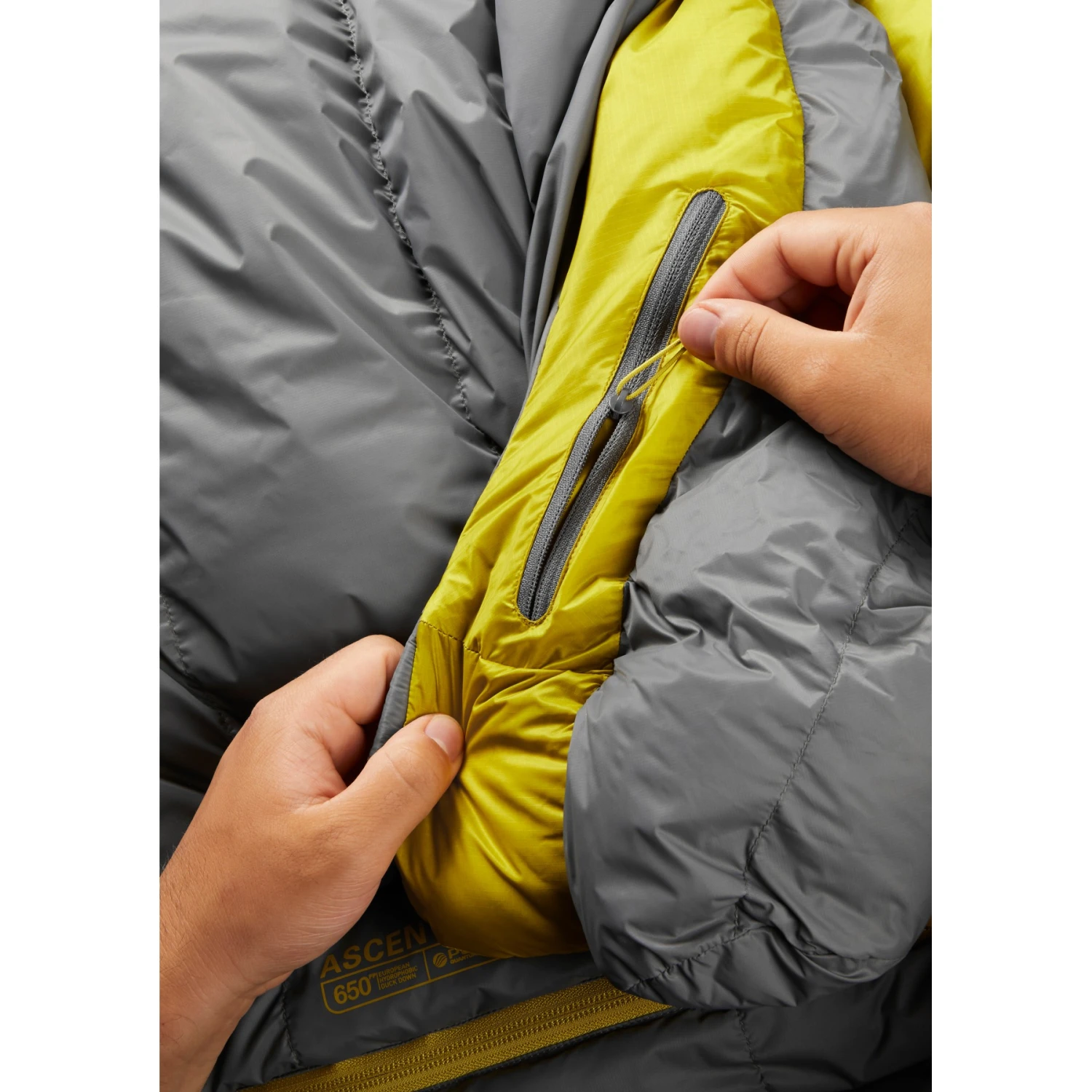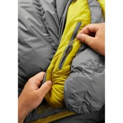 De Ascent Pro heeft een ¾ lange hoofdrits met een met dons gevulde windkamer binnenin en een 3D-warmtekraag, die beide zo weinig mogelijk lichaamswarmte naar buiten laten ontsnappen. Binnenin is er een zak met rits om je hoofdlamp bij de hand te houden, en het schuine voetgedeelte houdt je gegarandeerd in een comfortabele slaaphouding. Reist u met een partner of hebt u gewoon meer ruimte nodig? Rits eenvoudig twee slaapzakken aan elkaar met een rechter- en een linkerrits.