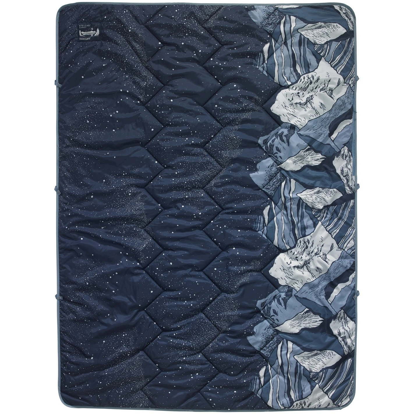 Het is geschikt voor kamperen bij zacht weer en op het strand of overal waar wat extra warmte en functie gewenst is. Met kliklussen rond de rand om te verbinden met andere dekens, quilts, lakens of de Mattress Snap Kits van Therm-a-Rest.