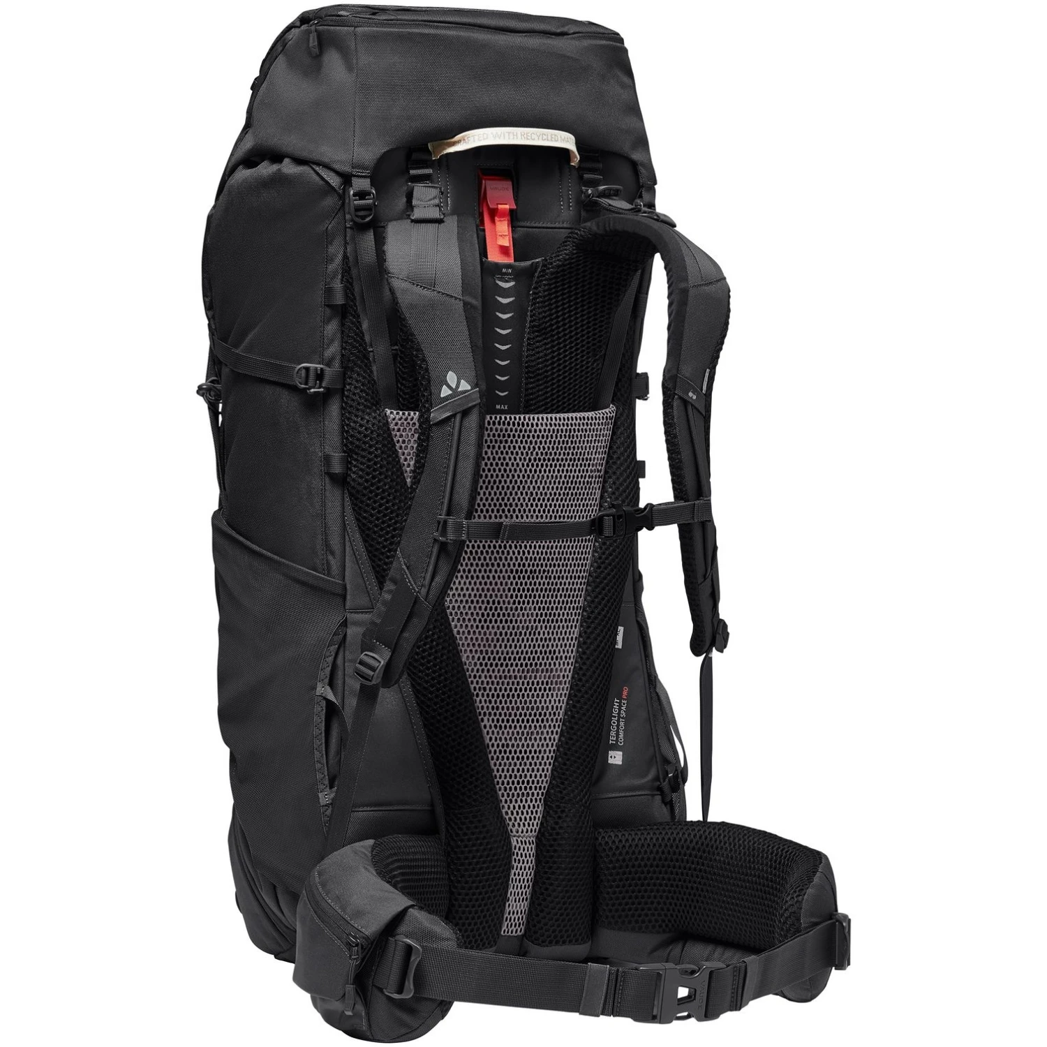 Grote trekking rugzak voor veeleisende trekking. De rugzak is uiterst robuust en comfortabel onder zware belasting. Het heeft een rugvriendelijk draagsysteem en is hoofdzakelijk gemaakt van gerecycleerde materialen.
